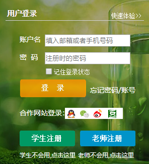 記住登錄狀態(tài)忘記密碼/賬號(hào)合作網(wǎng)站登錄: 學(xué)生不會(huì)用,點(diǎn)擊這里老師不會(huì)用,點(diǎn)擊這里