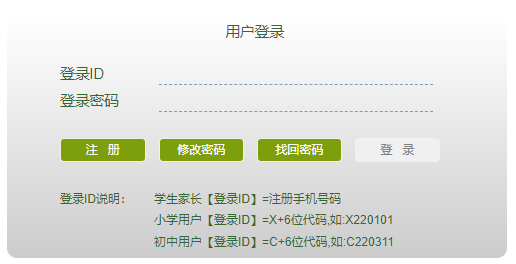 登錄ID說明: 學生家長【登錄ID】=注冊手機號碼