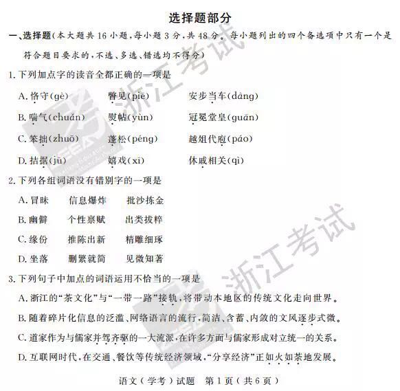 浙江省2017年4月高中學業(yè)水平考試語文試題及答案